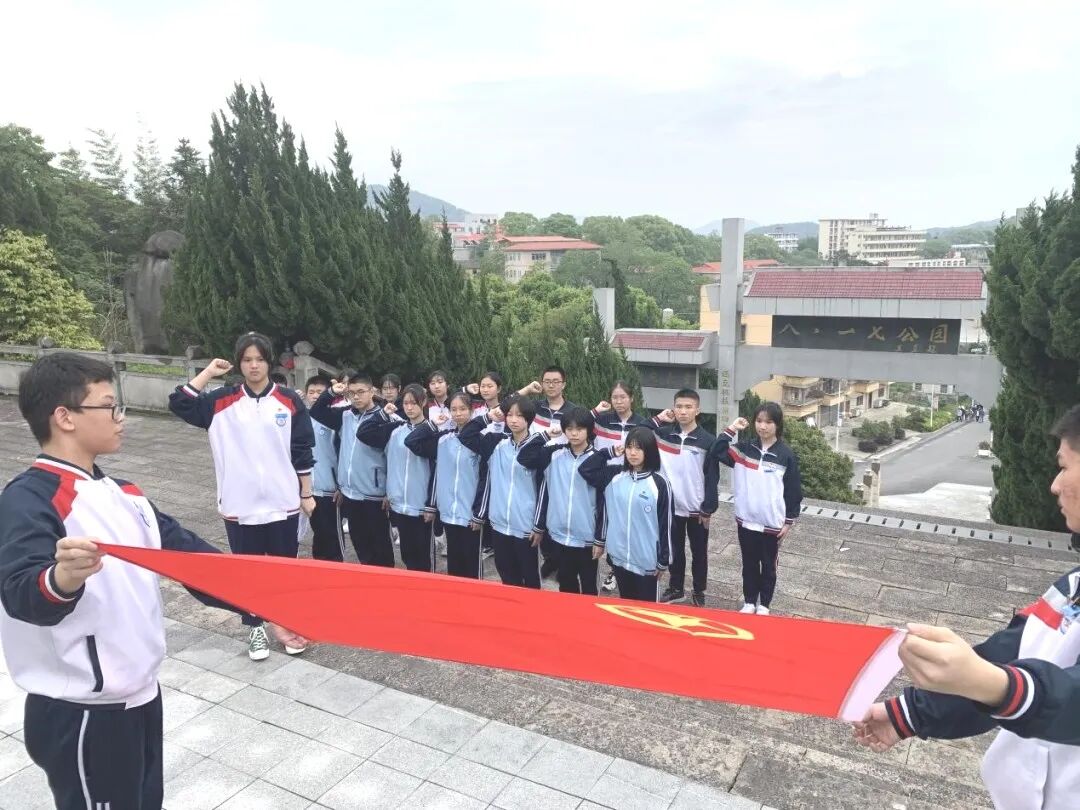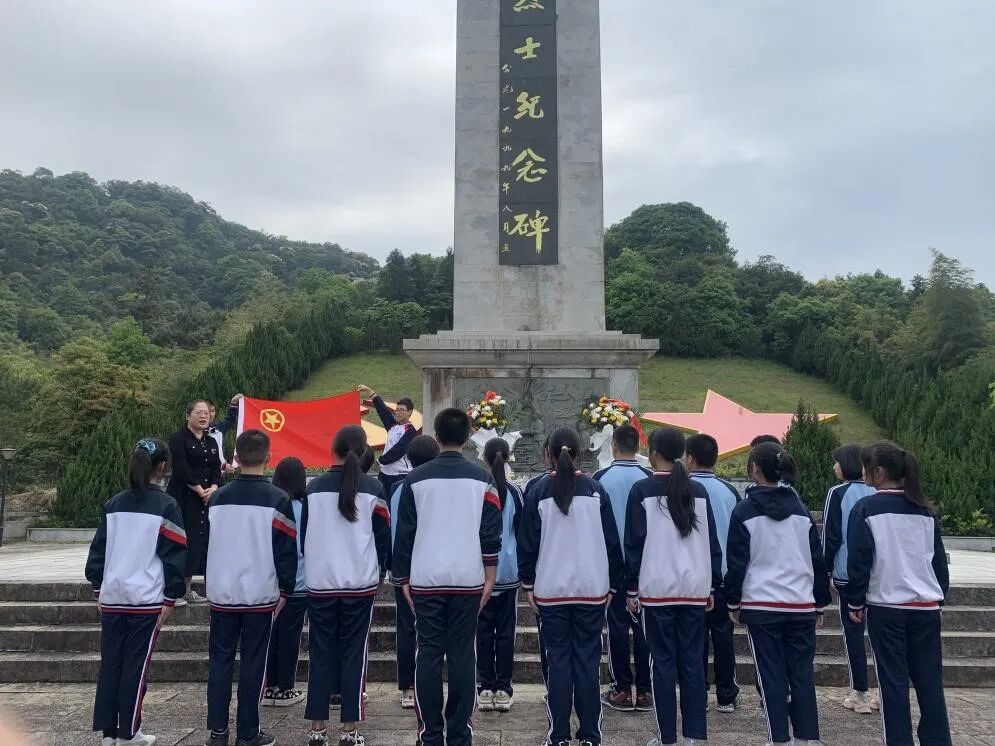 活动在庄严的国歌声中开始,由团委书记蔡柳烨老师主持入团仪式。蔡老师首先祝贺同学们成为一名光荣的中国共产主义青年团团员,她对团员们说道:在中国共产党成立100周年、五四运动102周年之际,新团员们在八·一七革命烈士纪念碑前完成庄严的入团仪式意义重大,全体团员都应铭记今日幸福生活来之不易。