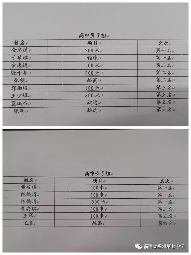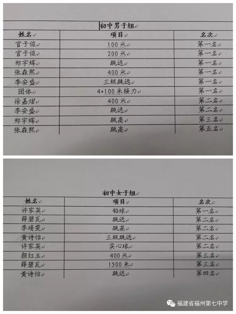 初中组比赛成绩