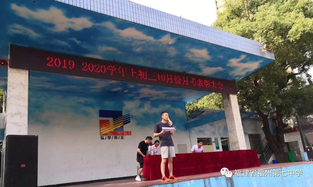 随后,由黄通平段长公布月考优秀班集体,以表彰在此次考试中进步较大的班级,由林绍强副校长进行颁奖。