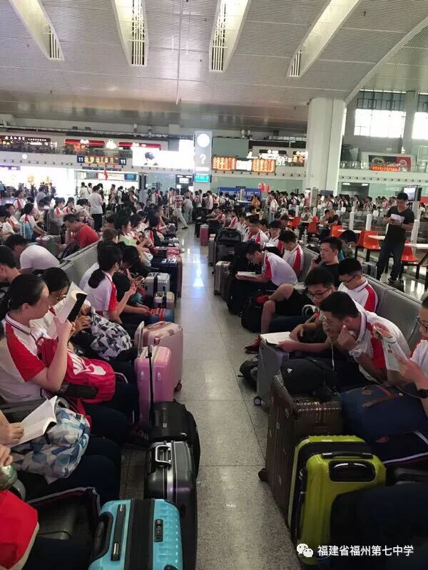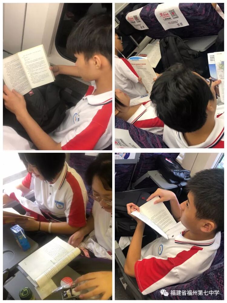 同学们一早整队出发,身着统一的红色校服,无论进站、候车、登车、同学们都保持了整齐的队形,并且近两个小时的车程里,大部分同学都手捧书卷,静默或低声,引的同行的游客都赞不绝口,这本身也俨然成为了一道红色的风景线。