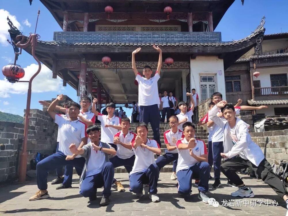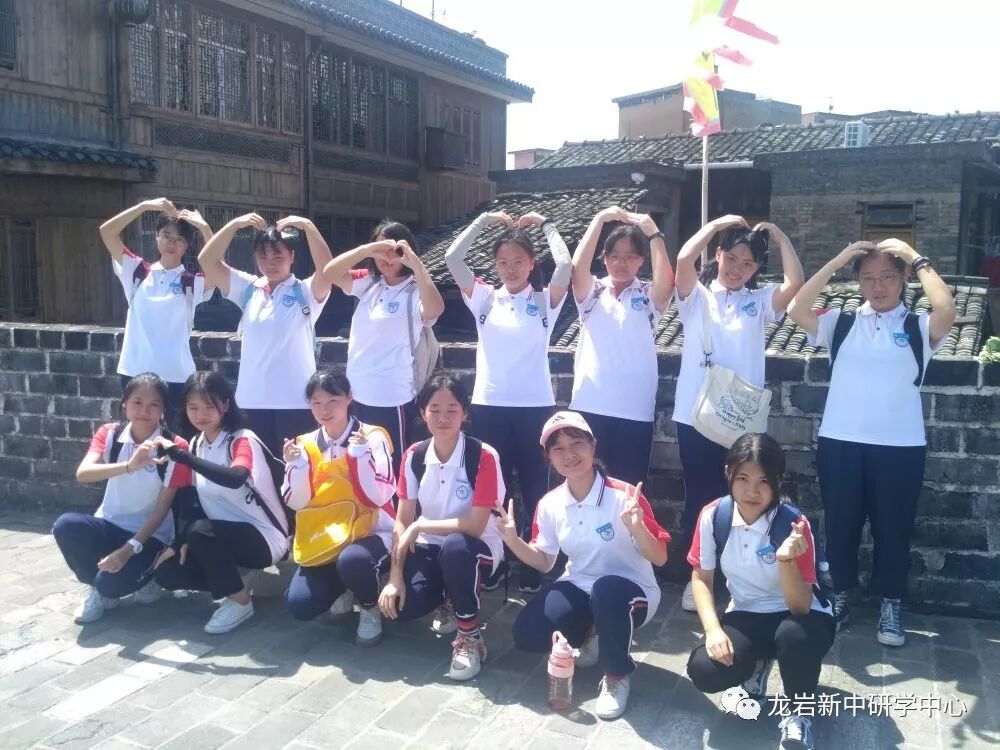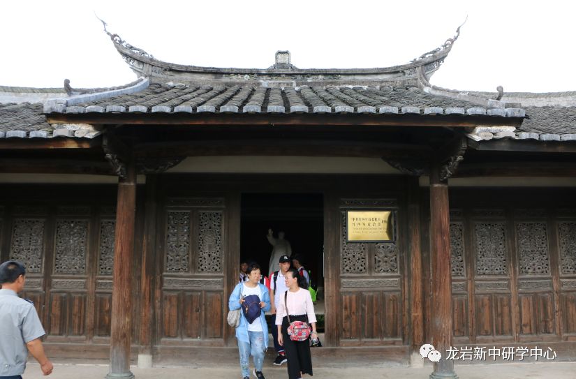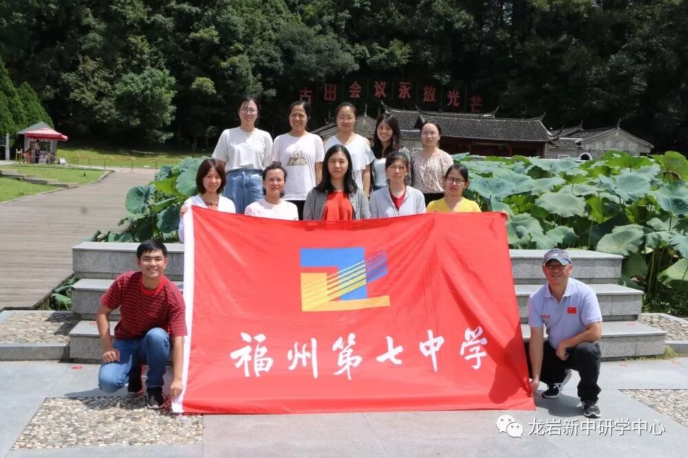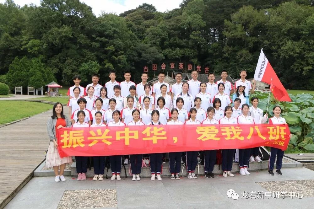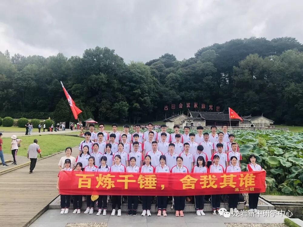 老师、同学们在古田会议旧址前拍下集体照不忘这意义非凡的活动!