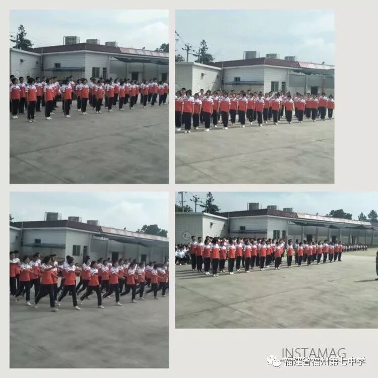 你看,训练时,我们井然有序。各班整齐有序的队伍,展现了昂扬向上的力量。训练中的我们,用汗水证明青春的活力无限。