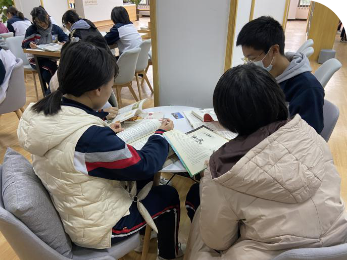 高三年段立足高考复习的实际情况,以“集萃涵养 读写结合”为主题在校图书馆开设阅读课。同学们围绕“说真话”的议论文写作主题,分组搜集相关的写作素材,并尝试通过小组讨论对素材进行分类,并提炼主题观点,每个小组带着任务走进图书馆,聆听老师的阅读指导,小组合作学习,完成写作提纲,做到“读写结合”。