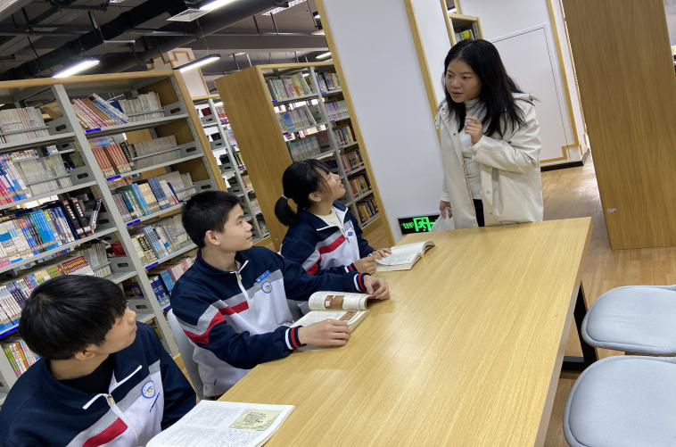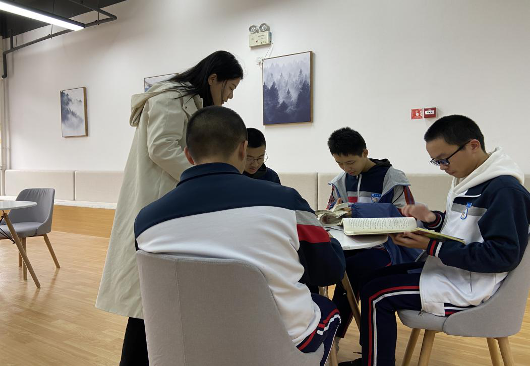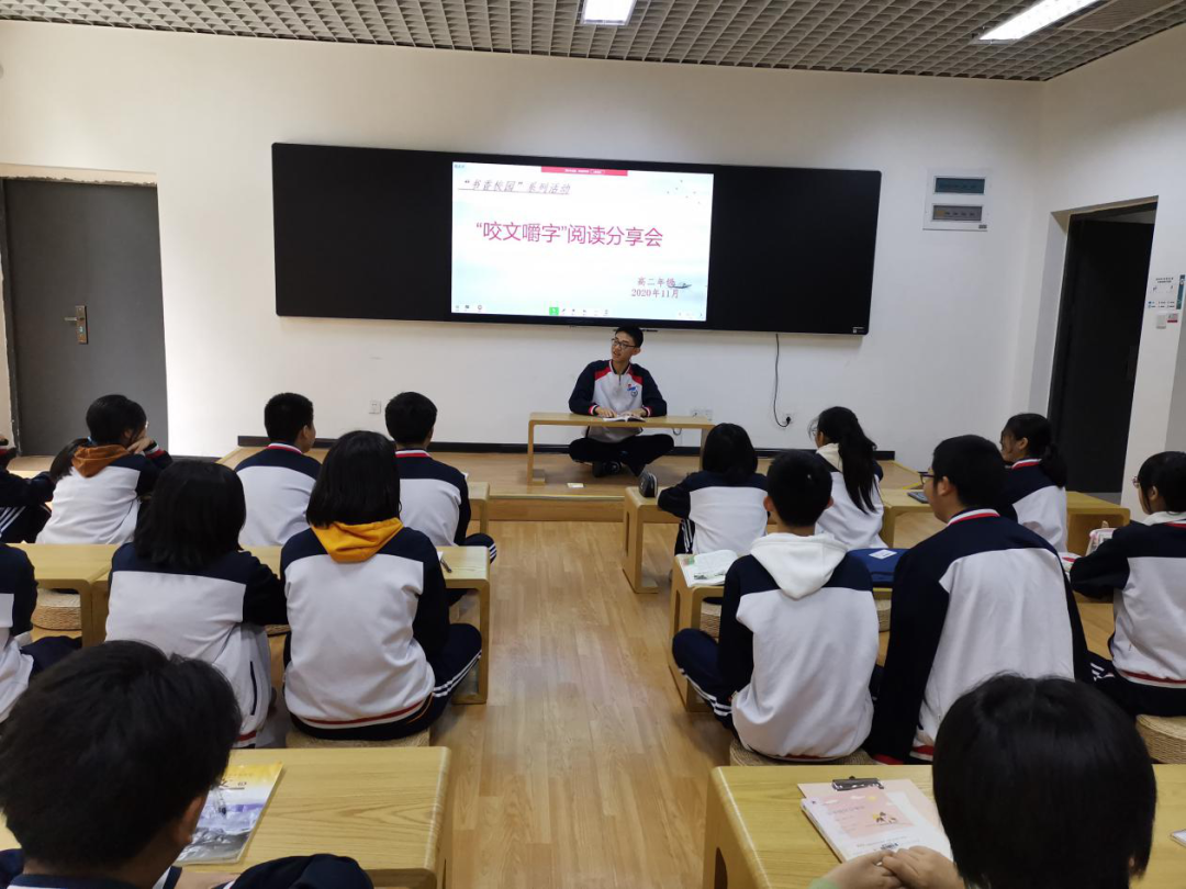 为了让同学们更好地亲近文学,以朱光潜先生倡导的“咬文嚼字”精神来阅读,高二语文集备组以“咬文嚼字”为主题在校图书馆开设了阅读课。同学们先在安静的国学馆席地而坐,聆听老师的阅读指导;然后走进藏书馆,选择一本自己喜爱的文学类书籍,阅读其中的某一篇章或某一部分,以读书笔记的方式对文本进行“咬文嚼字”,品评佳处,探讨不足。最后,以小组为单位完成一份同主题的手抄报,分享同学们的阅读成果。