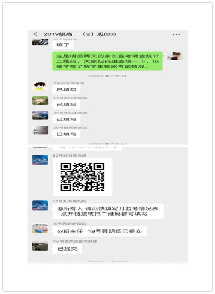 家长的理解支持能够极大促进考试的成效,为此高中各年段在考前还举行了考前家长动员会,一方面通知考试范围,明确考试安排表;另一方面也号召家长一起监考,帮助孩子形成良好习惯。同时,各班主任组织了以诚信考试为主题的班会,教育学生诚信应考。
