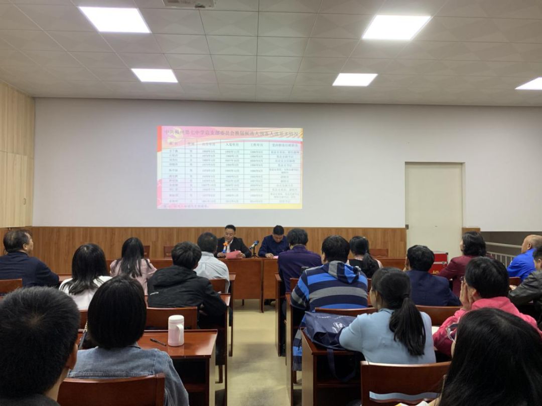 在换届选举投票环节,陈华演同志宣读选举办法(草案),介绍委员候选人基本情况,全体党员表决通过了选举办法(草案)、候选人名单、计票人以及监票人名单。党员按要求认真填写选票、按序投票,经过全体党员无记名投票和差额选举,邱晓兴、谢振国、石炜君、陈华演、林义辉、林绍强、郑仁荣、方千鑫、卓凌颖等9名同志当选中共福州 第七中学总支部委员会新一届委员。