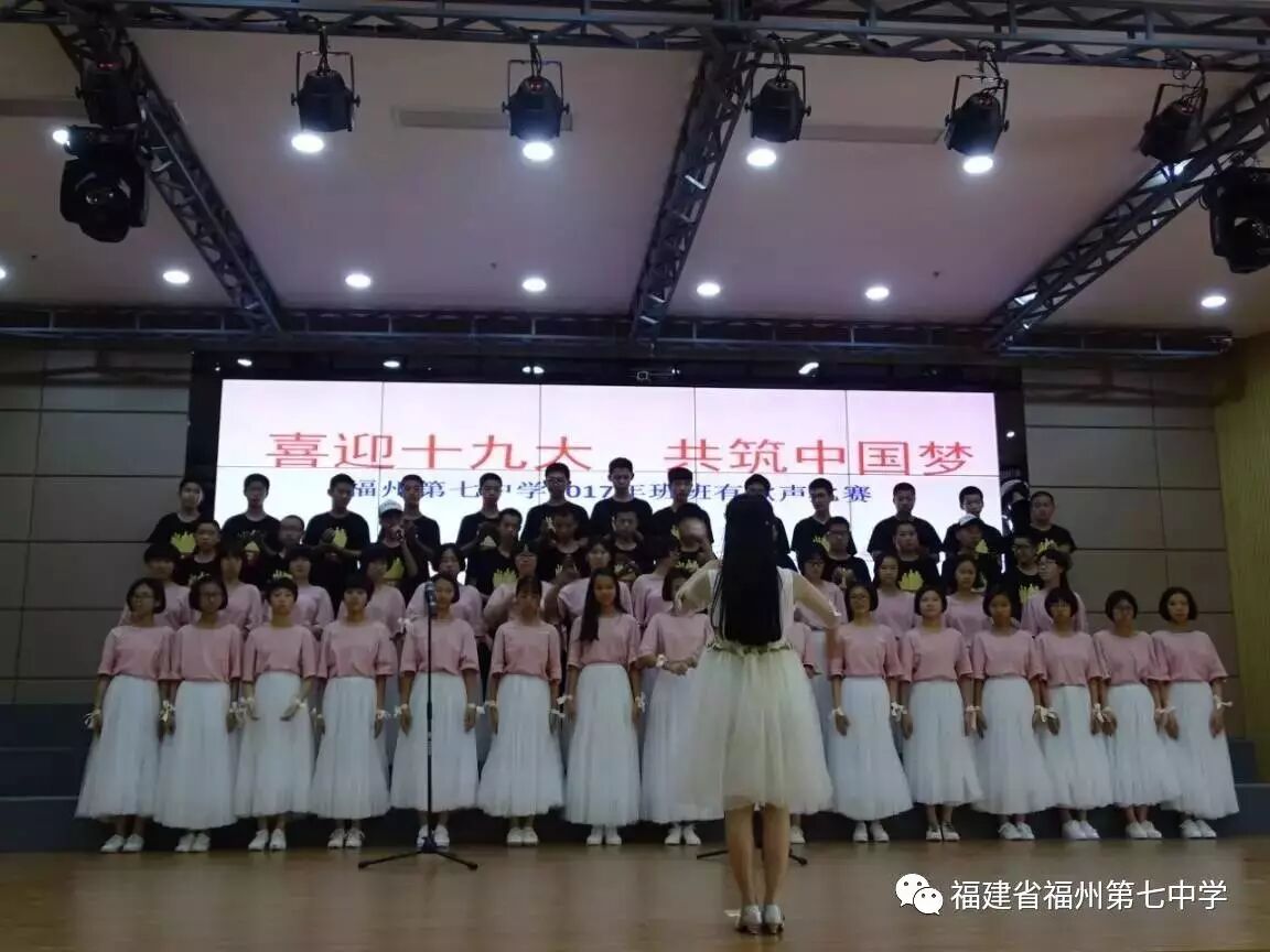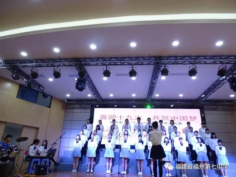 比赛中,欢快紧凑的《最初的梦想》和《红蜻蜓》,悠扬轻快的《栀子花开》,掷地有声、铿锵有力的《大学梦》《厚德载物》,光芒四射的《夜空中最亮的星》,文雅悠扬的《书画中国》,这一曲曲充满了青春朝气、爱国热情的旋律感染着现场的每一个观众。同学们阳光向上的精神风貌,巧妙的队形变化,丰富的演唱技巧,温馨的手语,武术展示,精湛的电子琴、电吉他、架子鼓、琵琶伴奏给大家留下了深刻的印象。全体同学都精神抖擞,神采飞扬,唱响着我们美好的校园生活,演绎着七中学生的风采。