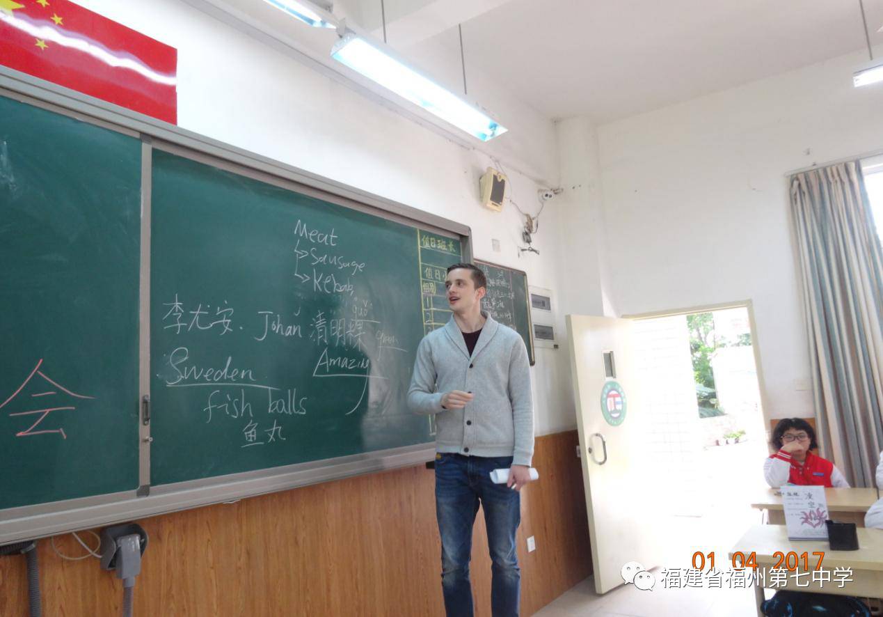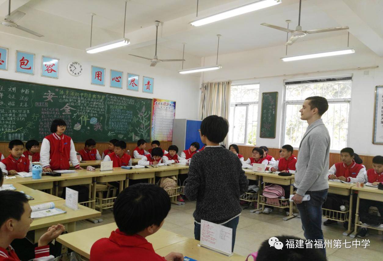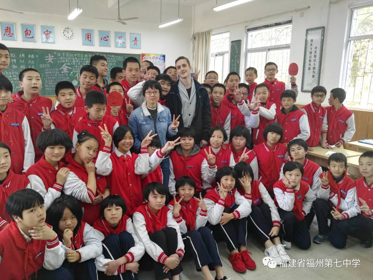4月1日是一个特殊的日子,福州七中初一(5)班和初一(10)班的孩子迎来了一位特殊的客人——瑞典皇家理工学院、浙江大学研究生Bergstroem Bengt Johan。