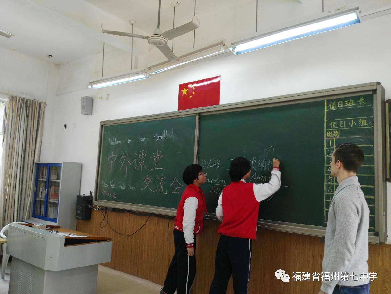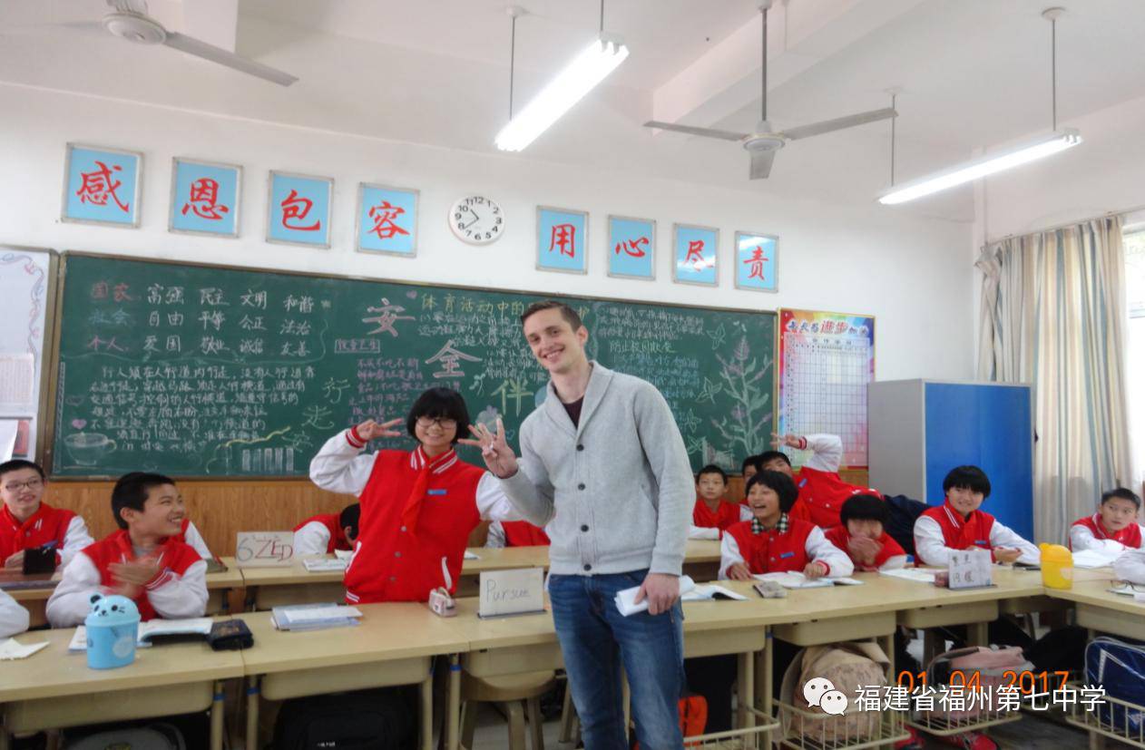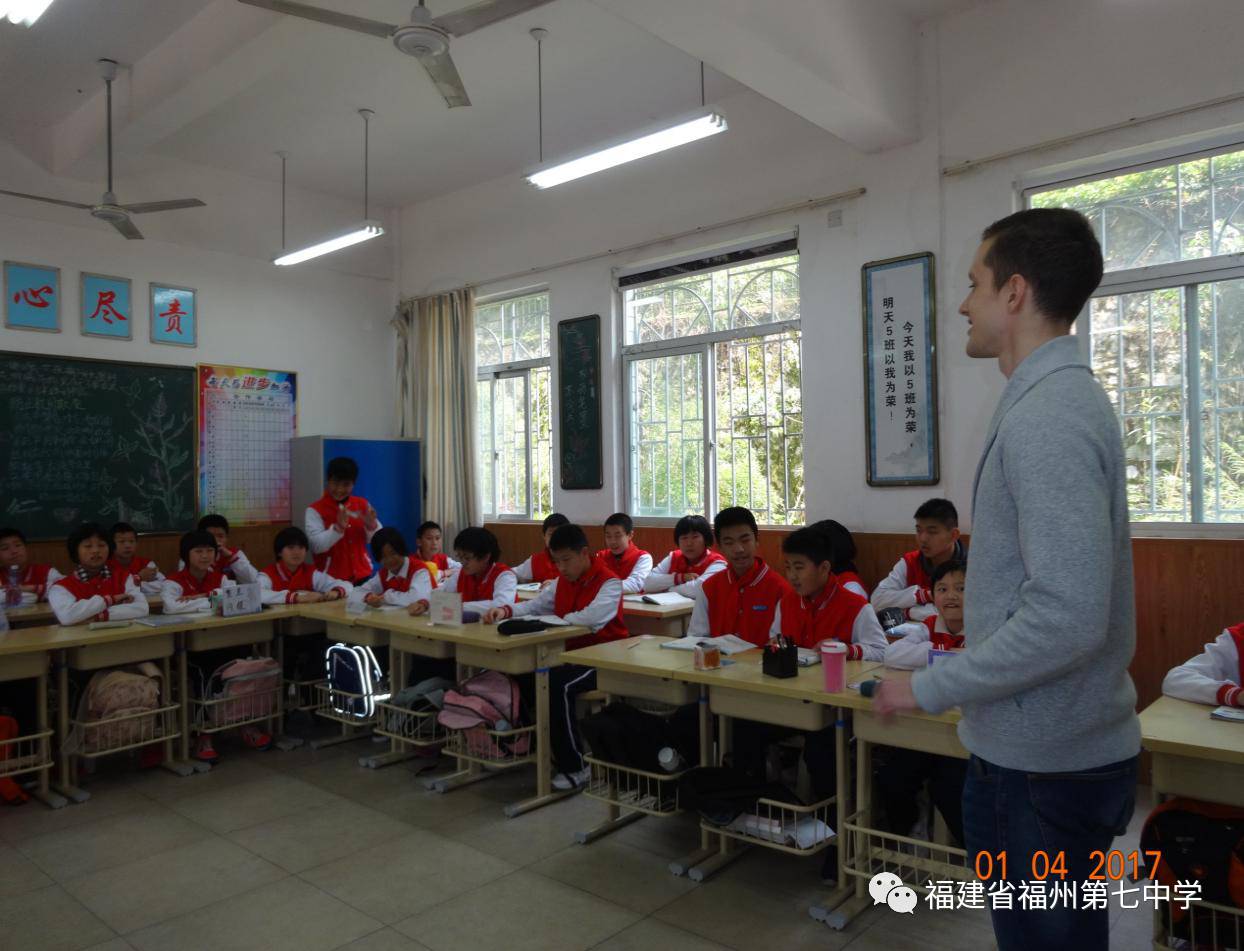 4月1日是一个特殊的日子,福州七中初一(5)班和初一(10)班的孩子迎来了一位特殊的客人——瑞典皇家理工学院、浙江大学研究生Bergstroem Bengt Johan。