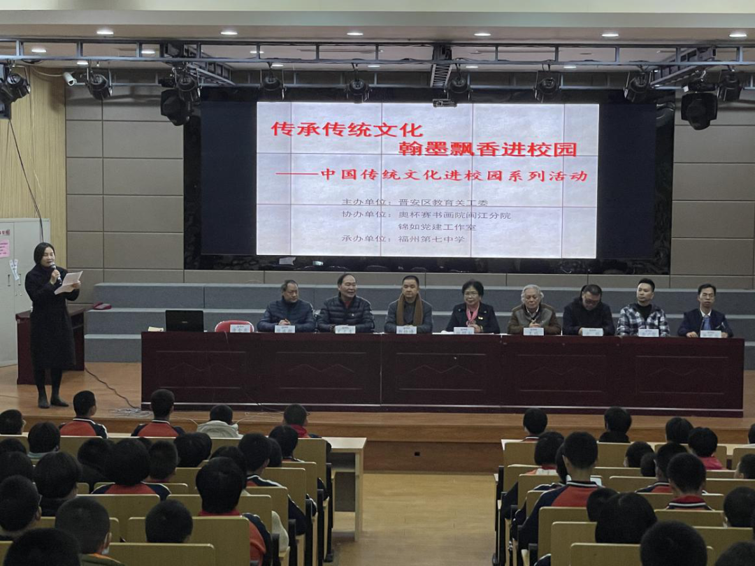 2020年12月15日福州七中携手奥杯赛书画院闽江分院锦如党建工作室开展了传统文化进校园活动。