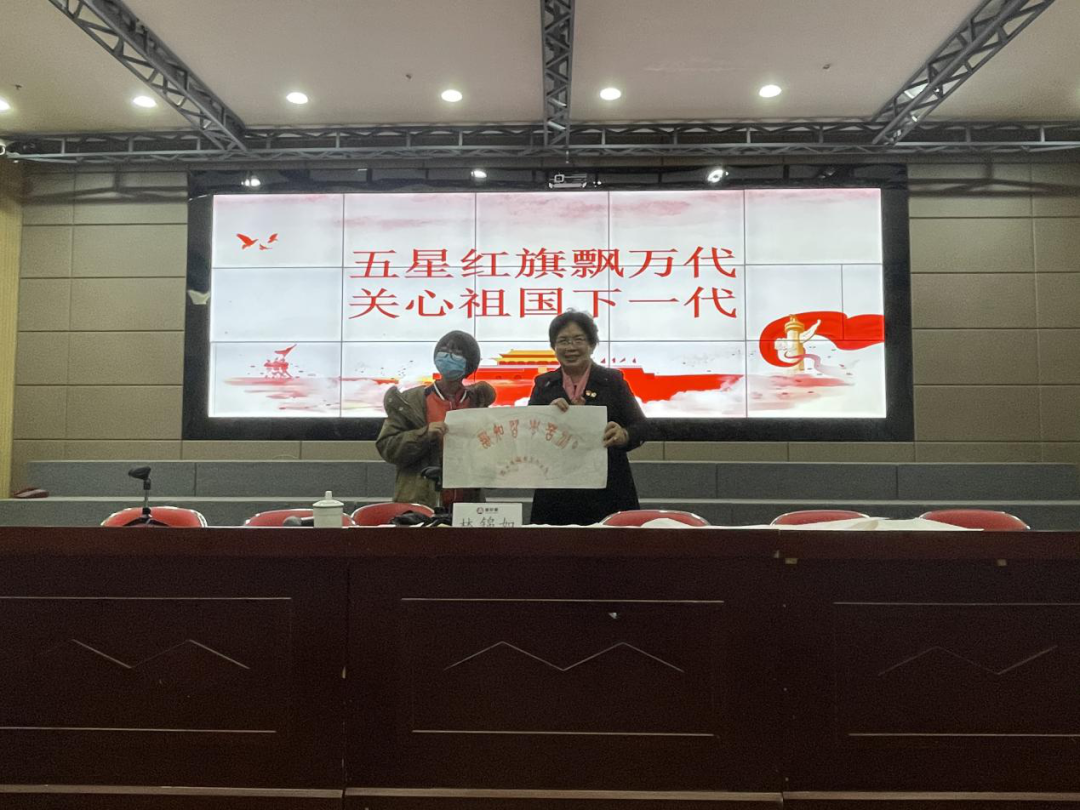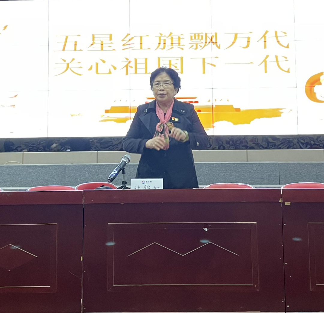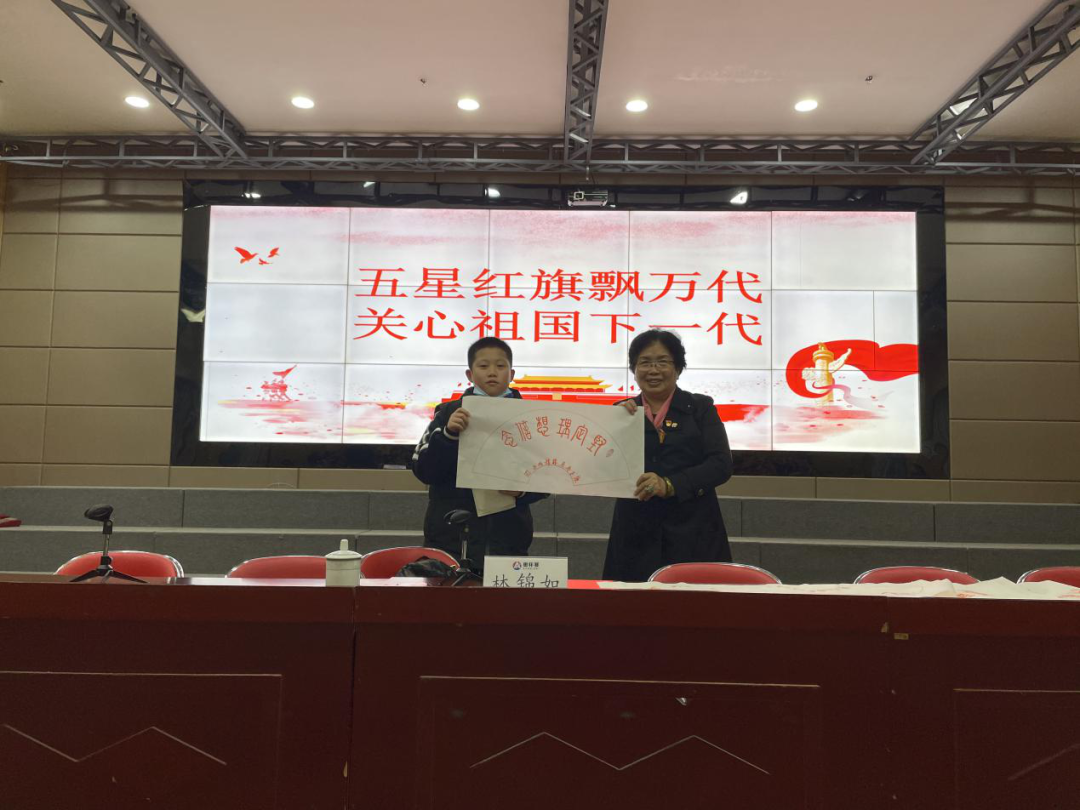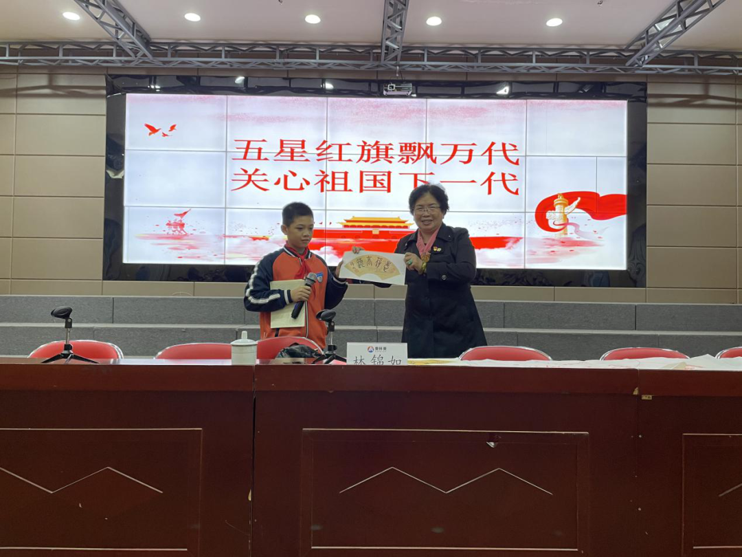 晋安教育关工委常务副主任、奥杯赛书画院分院院长林锦如做“五星红旗飘万代,关心祖国下一代”主题演讲。