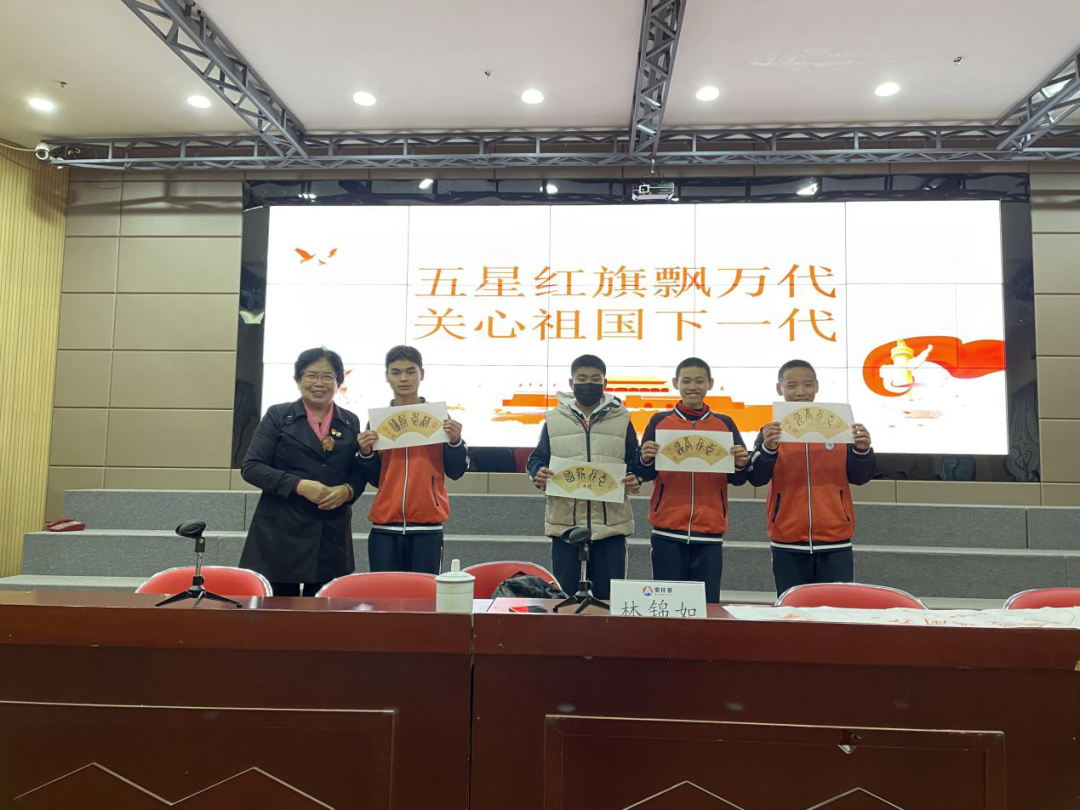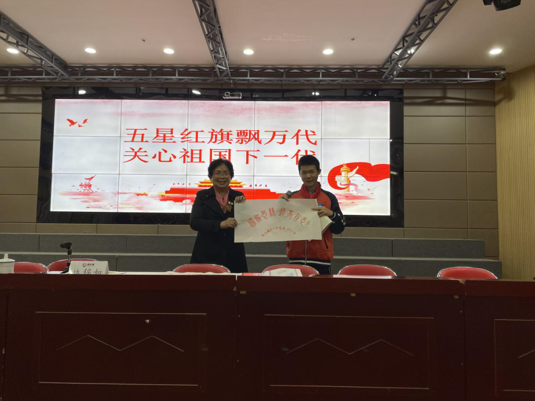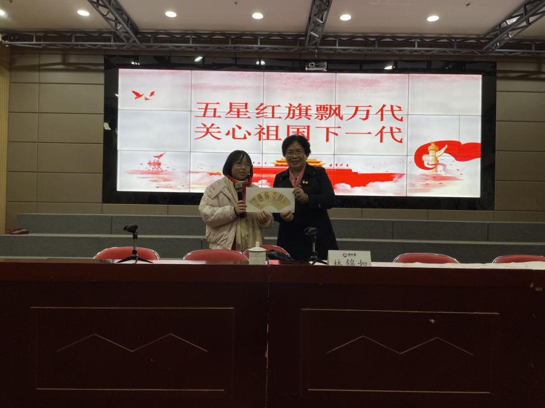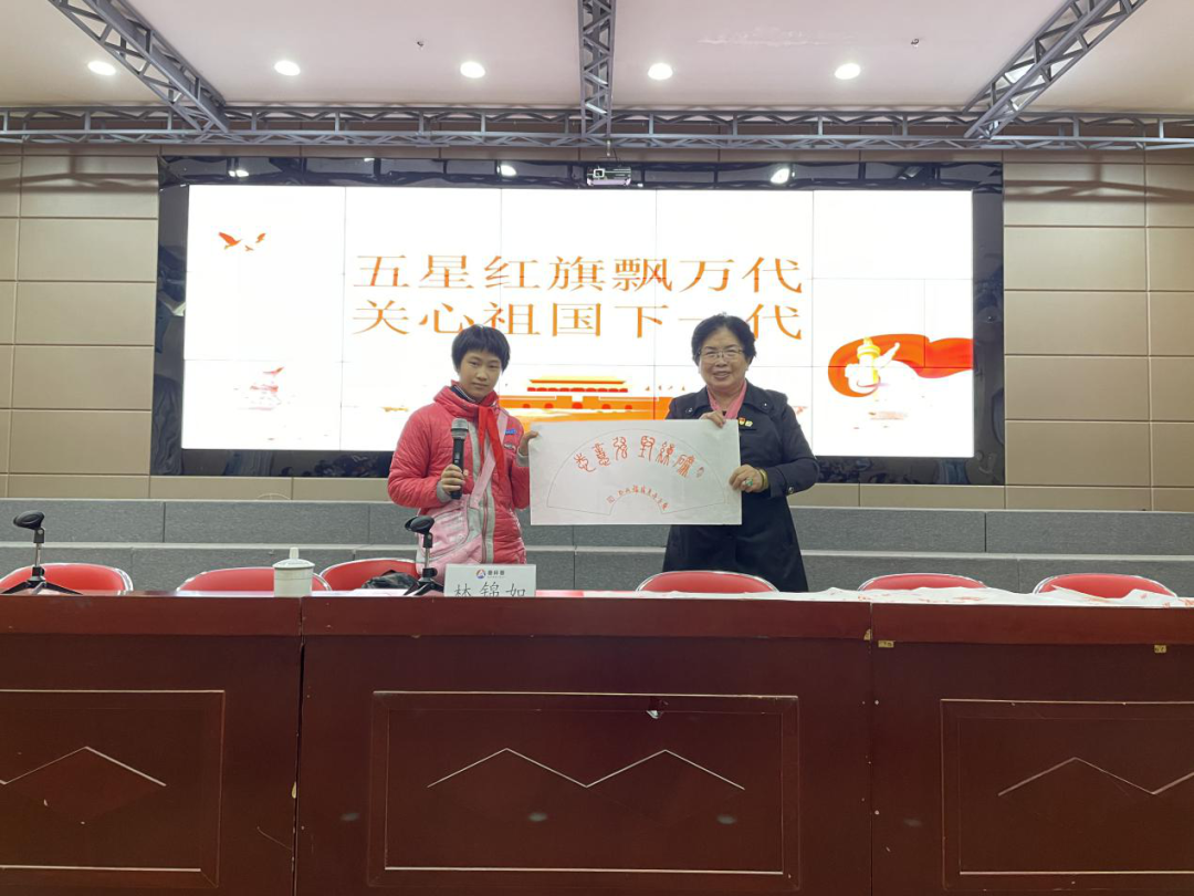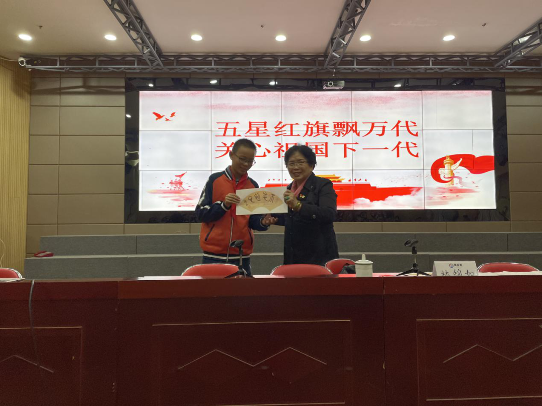 晋安教育关工委常务副主任、奥杯赛书画院分院院长林锦如做“五星红旗飘万代,关心祖国下一代”主题演讲。