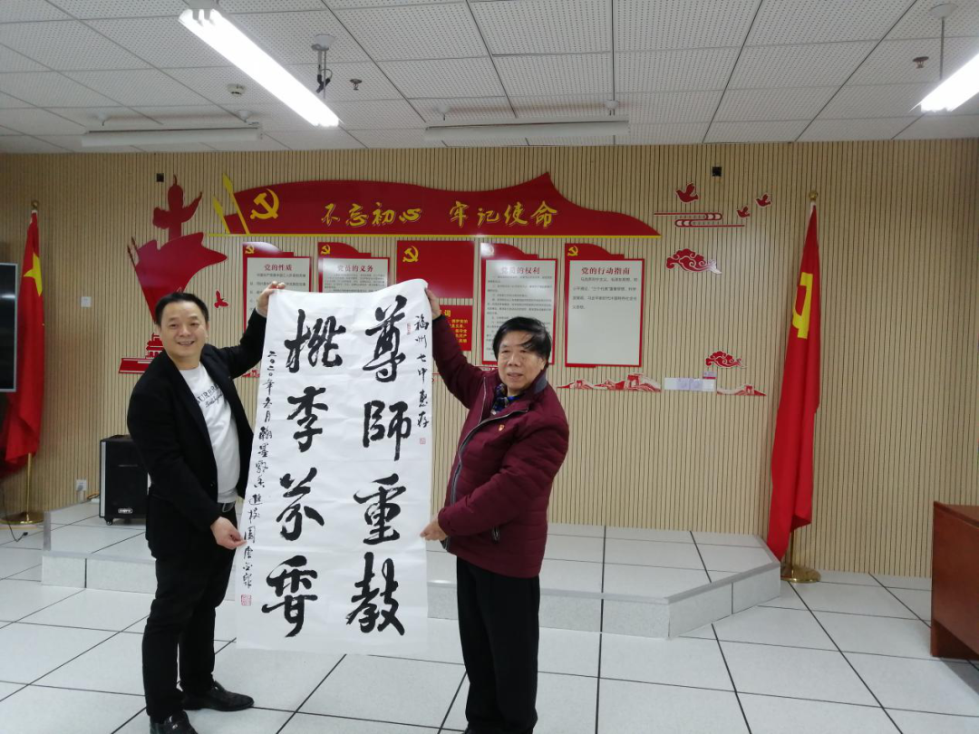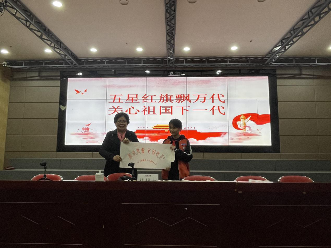 她与在场的同学们进行了精彩的互动,赠送书法作品以作留念,鼓励孩子们要勤学苦练,争取在书法方面取得更好的成绩。激励同学们树立正确的人生目标,培养好思想、好品行、好习惯,做好祖国的建设者。