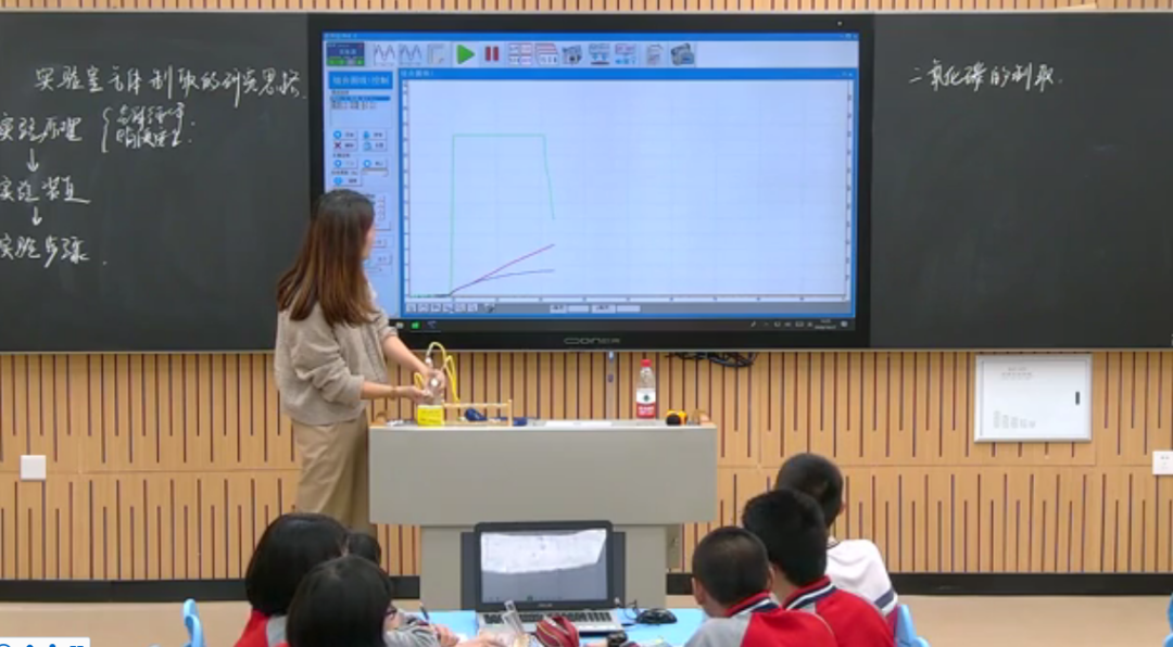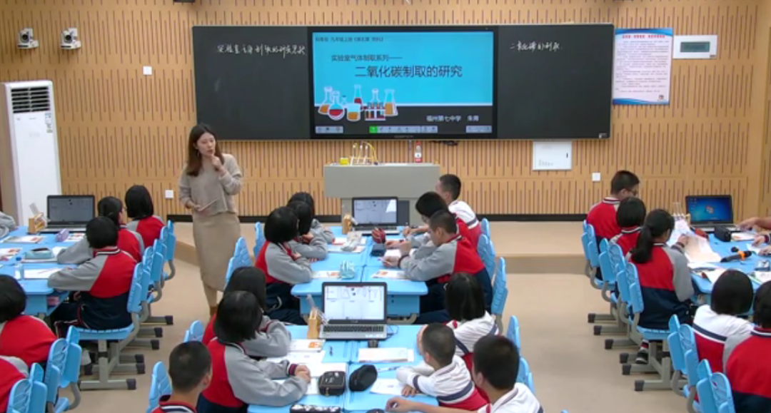 朱青老师带来了题为《二氧化碳制取的研究》的化学实验课,本节课贯模型建构的核心素养,通过初构模型,优化模型,再到应用模型,建构气体制取的研究思路。并且本节课将现代教育技术融入课堂,手持技术的应用增强实验可视性,学生多角度分析化学实验;微信公众号的应用,实现课前课后的师生互动;seewo白板多种功能的开发应用,增强课堂的交互性。