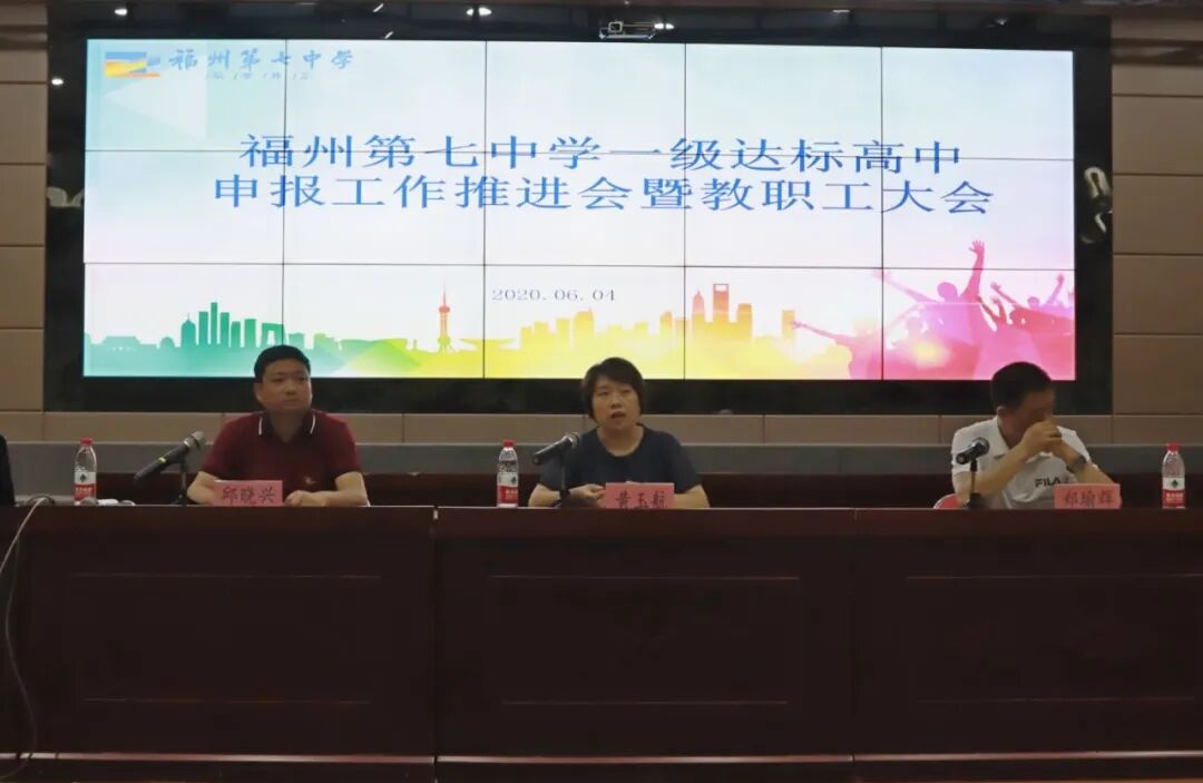 为进一步推进我校一级达标评估申报工作,提振我校教职工全力以赴开展申报攻坚工作的精气神。2020年6月4日下午,伟德足球官网下载安装召开一级达标高中申报工作推进会暨教职工大会。区教育局党组成员黄玉航主任科员、区教育局中教科郑瑜辉科长莅临现场指导工作。会议邱晓兴书记主持,伟德足球官网下载安装全体教职工参加。