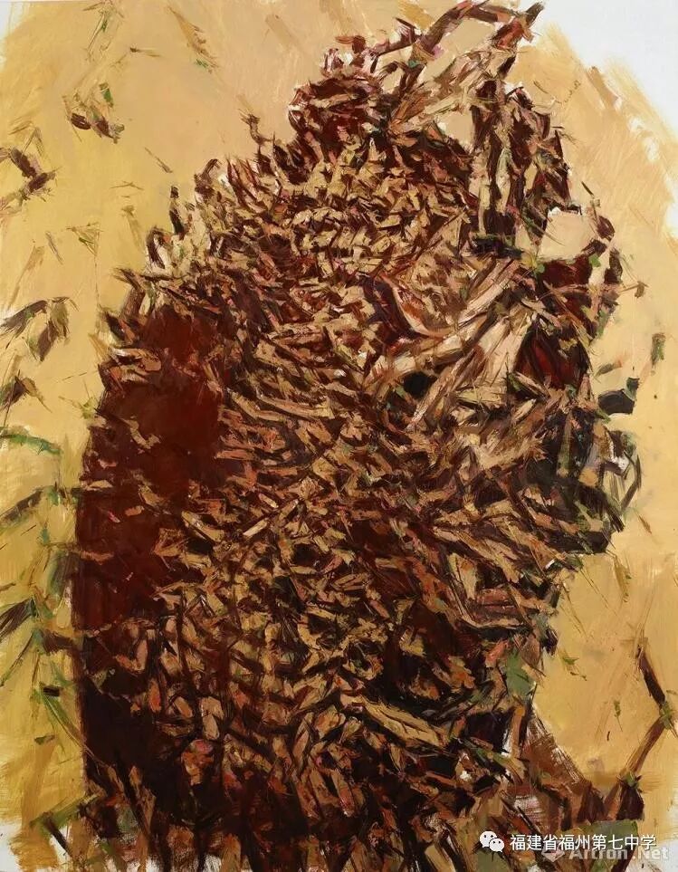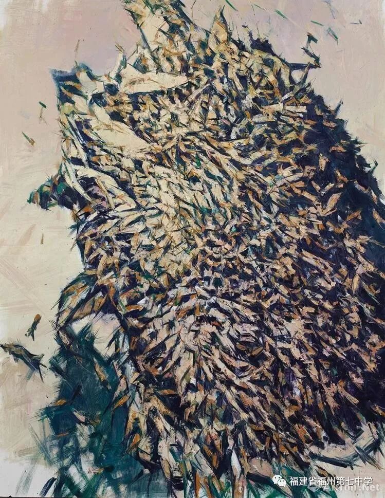 所以,许江借葵要画的是大地无可奈何的逝去,是“萧萧落叶、漏雨苍苔”宿命般的沉沦与悲慨。“看你的画,感触颇多,以你的社会工作,总以为应该坐在宝马车里,在机场来回跑个没完。但是,你却始终不放下画笔,更难能可贵的是,你的画中总有一种沧桑感。好像是在高山上遥望,看过去的沧桑,看遥远的沧桑,这与你的年龄不相符,你的追求是在揭露人生的本质,有点苍桑森然的感觉。”吴冠中曾这样夸许江:“这是我作为一个人,作为一个老人,作为一个87岁的老人了,转了一圈回来,明白了什么,在人世间我所起的作用。”