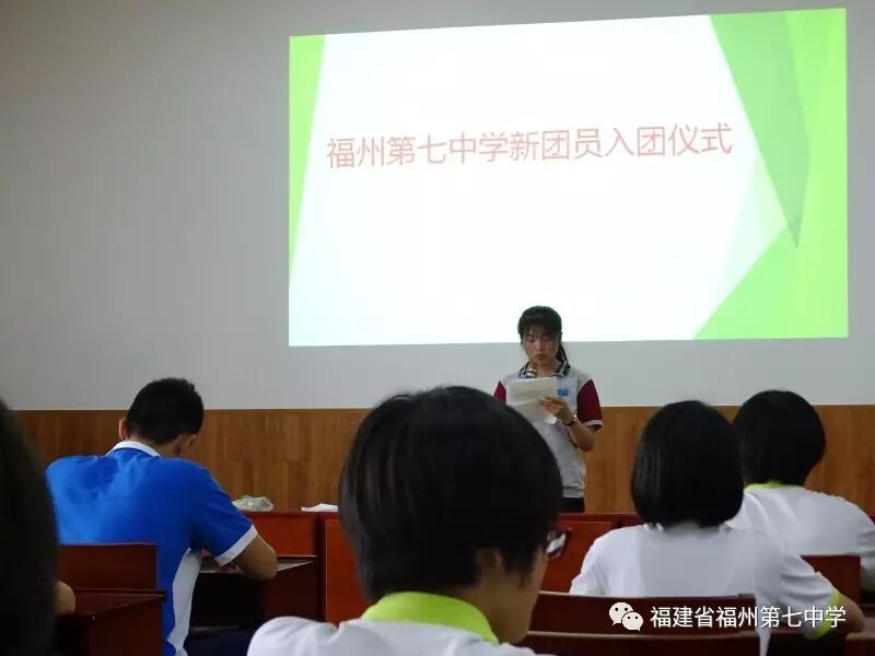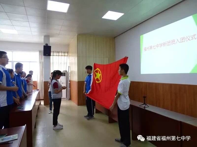 入团仪式上,首先全体起立,奏响国歌。随后,新团员佩戴团徽,老团员代表,高二4班裴翠同学带领新团员宣读入团誓词,全体新加入团组织的同学庄严宣誓。接着,初二年级新团员代表表示将时刻牢记今天的入团宣誓,严格要求自己,好好学习,积极向上,为自己的人生迈好每一步。新老团员代表分别进行发言。老团员代表进行了慷慨激扬的发言,她希望新团员在团组织的领导下,努力学习,不断进取,真正从思想上加入到团组织中去,以实现自己的入团誓言。