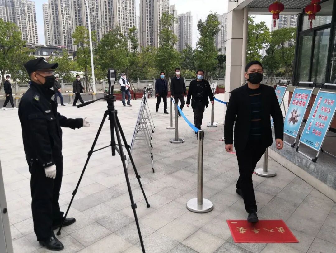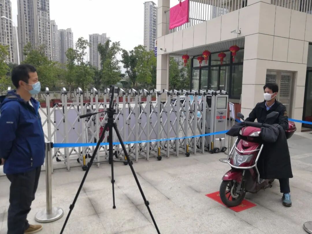 演练分别针对教职工步行、骑电动车、开车等入校方式进行了测体温与登记的操作演练。工作人员利用热成像仪对步行及骑车入校员工进行体温感应,热成像仪能够利用热图像上的不同颜色感知被测物体的不同温度。在避免人员接触的同时,减少对正常入校员工的干扰。