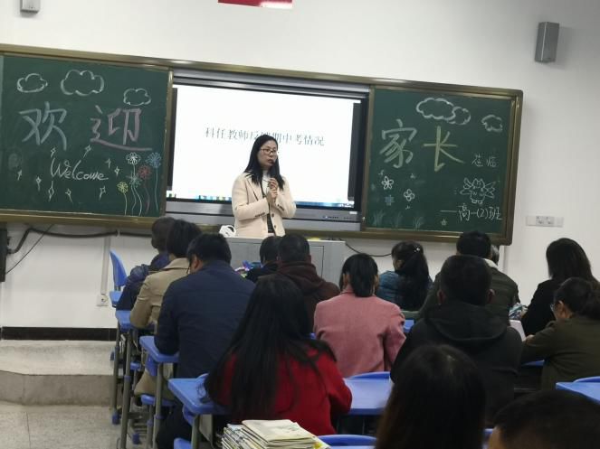 第二阶段在高中各个班级进行,各班科任老师依次进班从学科角度说明了学生近期以来在学科上存在的问题和新现象,并对此给家长介绍了许多科学有效的辅导建议。随后各班班主任进班和家长就学生的思想动态、近期的表现、初高中心理和学习接轨情况等家长普遍关心的问题进行了积极的沟通和交流。