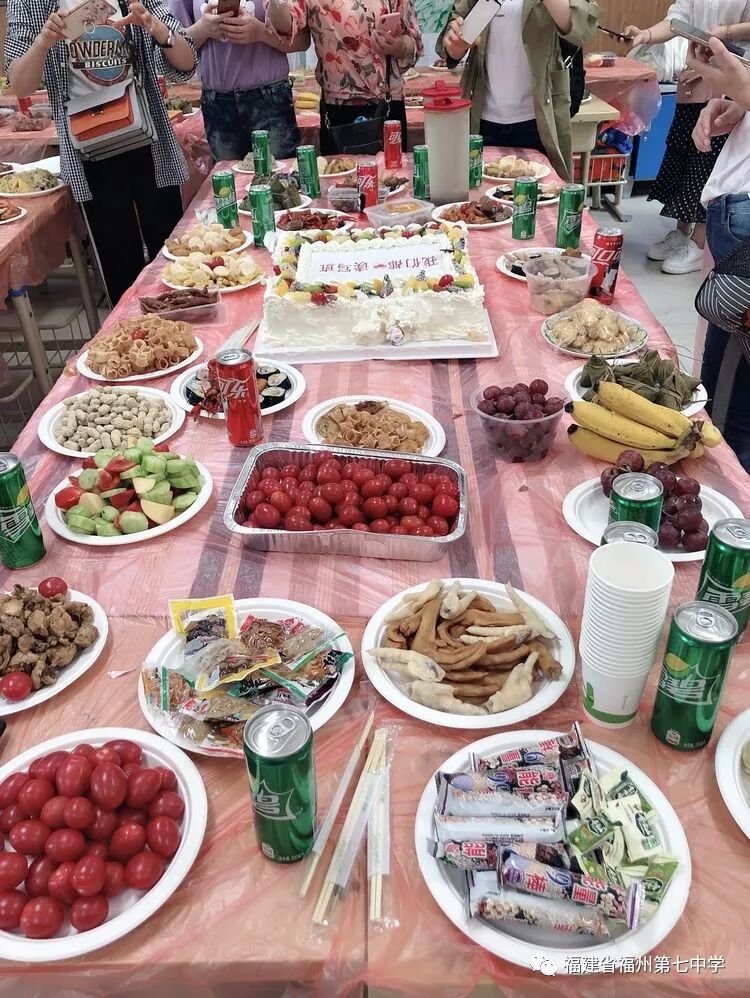 桌面上摆满了各式各样的水果拼盘、花式点心及美味冷拼,联谊会的第二环节“快乐冷餐会”正在如火如荼地进行着。