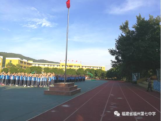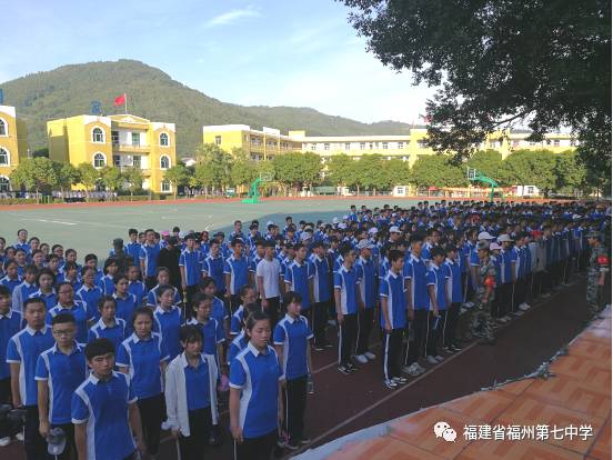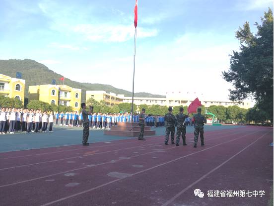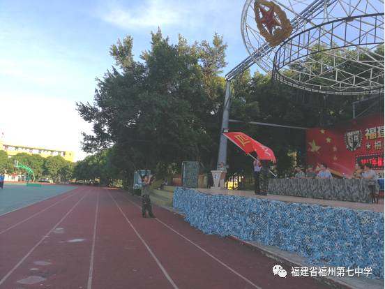 军歌嘹亮,红旗飘扬,高二年段段长黄榕鑫正式把红旗交予邱教官——高二2017学年军训正式开始,田径场上响起了一片热烈的掌声。