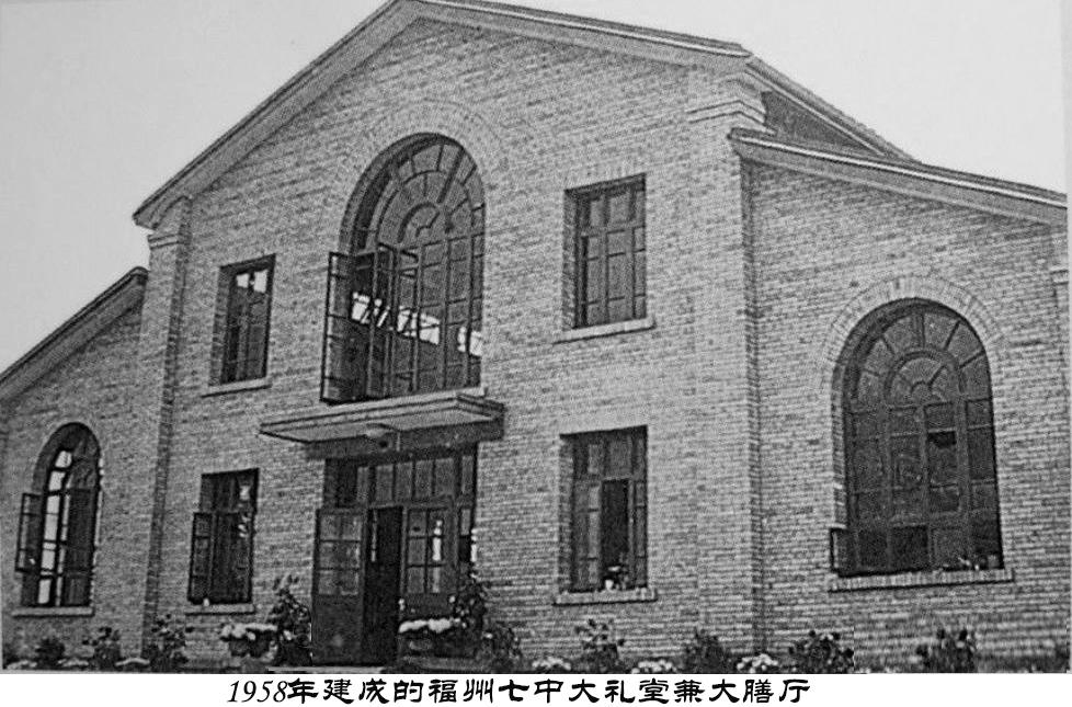 老师们说,1956 年夏,王育畊厅长到福州七中视察,在五一楼前面的大榕树下给老师做了一场报告。因为天气热,只有那地方比较大而且有树阴。她回去以后就给学校拨款修建礼堂,平时就是师生的膳厅。