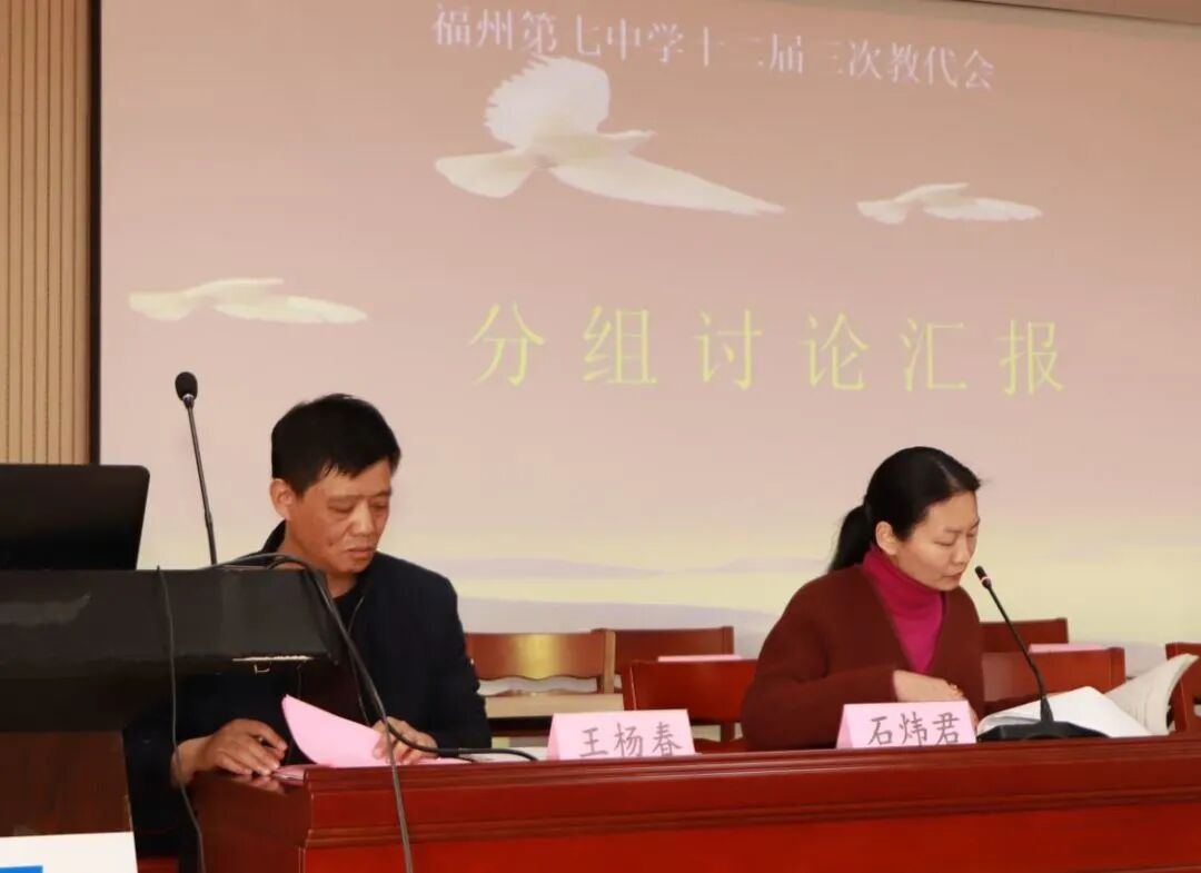 大会上,王杨春副主席对提交本次会议的《福州七中教职工绩效考核工作实施方案(修订讨论稿)》修改补充情况、《伟德足球官网下载安装改革与发展规划(2016-2020)总结报告》、《伟德足球官网下载安装改革与发展规划(2021-2025)草案》等,以及提案征集工作情况进行说明,并请代表进行审议。
