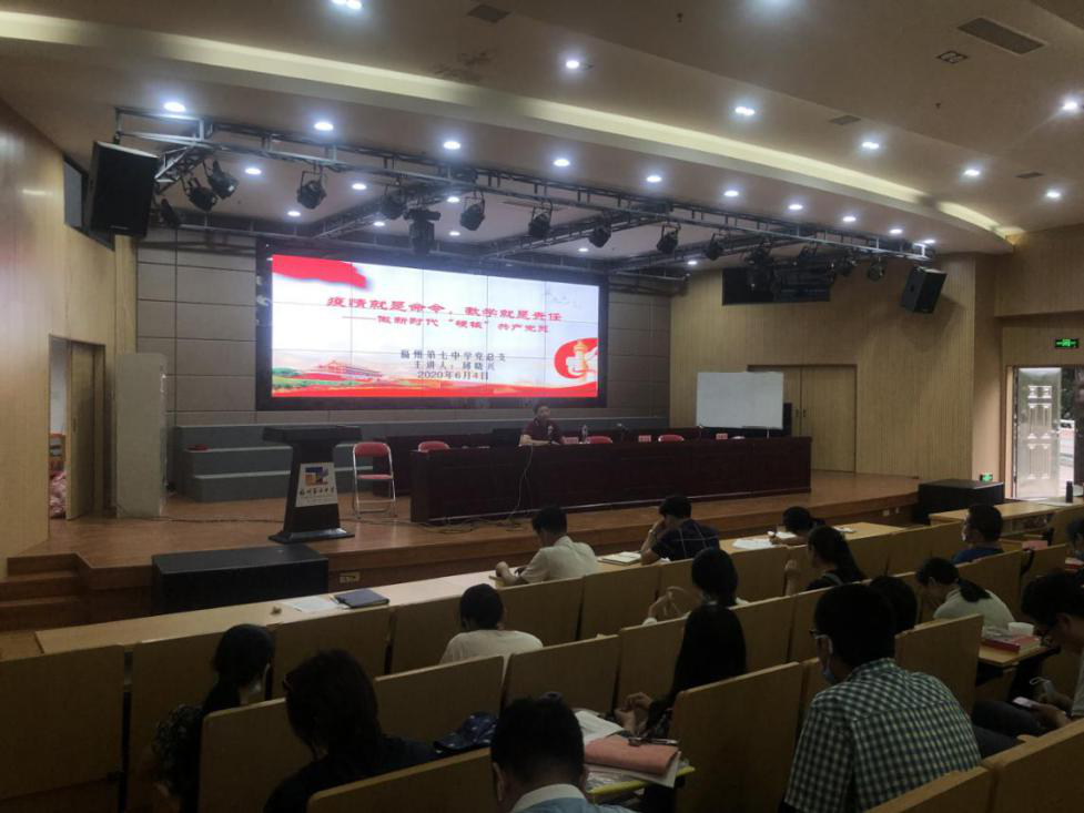 党课以《疫情就是命令,教学就是责任——做新时代“硬核”共产党员》为主题,结合学校疫情防控与复学复课工作实际,从党员的先锋模范作用是什么、疫情期间对党员先锋模范作用的要求、我校党员在疫情“内防扩散、外防输入”工作中如何发挥先锋模范作用等方面,探讨了党员应当如何坚守初心、勇担使命,发挥先锋模范作用,和家长共筑疫情防控坚强防线。