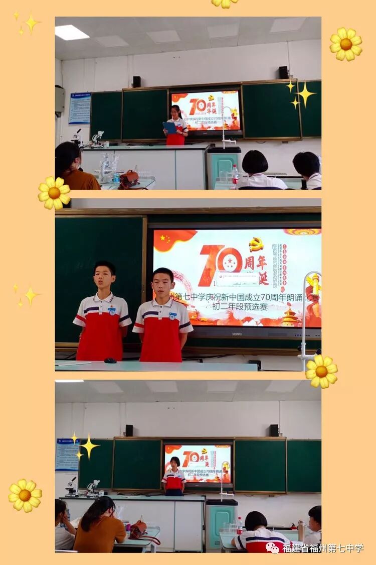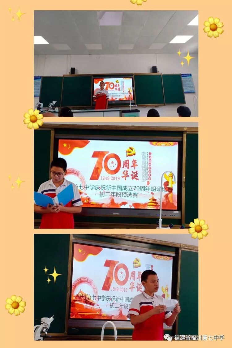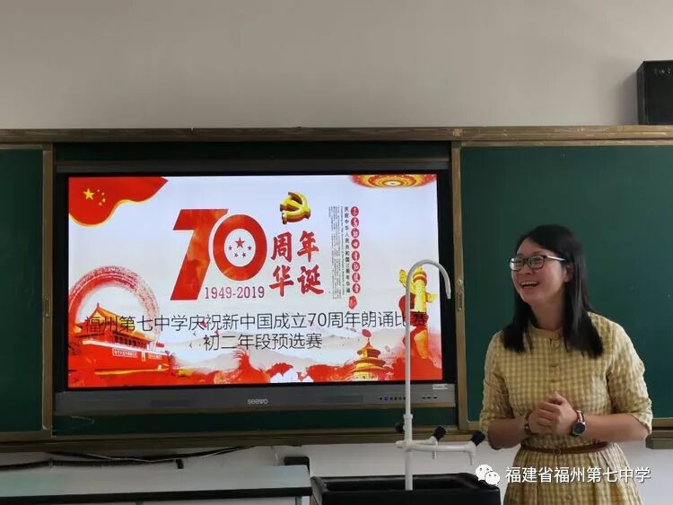 为庆祝祖国70周年华诞,激发全校师生的爱国热情,充分展示广大师生团结奋进、积极向上的精神风貌,引导大家以实际行动弘扬报国之志,我校开展“我爱我的祖国”庆祝新中国成绩70周年朗诵比赛。9月16号中午,我校初二年段在年段长潘建请、俞裕秉组织下,吴剑琴老师的主持下开展朗诵比赛初选活动,校德育处主任傅小罕老师、副主任黄榕鑫老师、团委书记蔡柳烨老师到场指导。初二年段13个班级代表队及班主任到场参与活动。