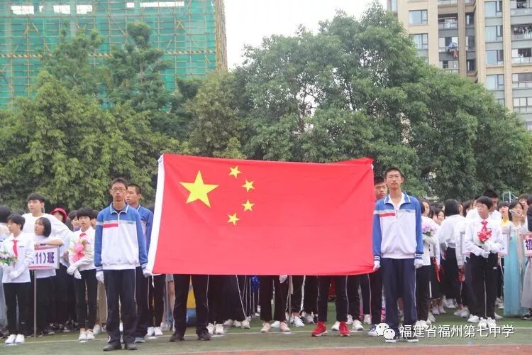 随着激昂的乐曲,6名身着校服的学生擎着鲜艳的五星红旗,迈着矫健的步伐,雄赳赳、气昂昂地走来。在五星红旗的引领下,伴随着铿锵的鼓声,由初一年段组成的花束队、高一(2)班组成的旗阵方队以及伟德足球官网下载安装武术队健步进入会场。他们摇曳鲜花,高举旗帜,迈着整齐的步伐,洋溢着青春的活力。