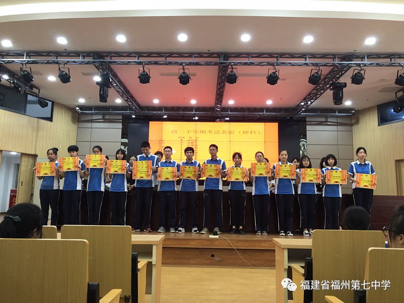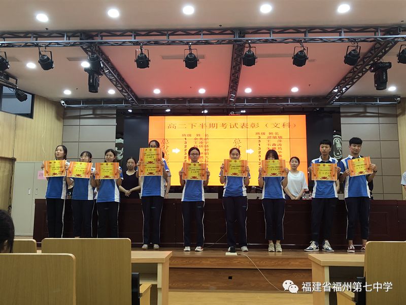大会首先为上学期期末考试中成绩优异的学生和进步较大的学生进行表彰并颁奖。年段长黄榕鑫老师宣读获奖名单,其中获得总分优秀奖的同学有:余美洁、王凌宇、杨娇娇、马婷、林鹏飞、詹芬芬、卓伊娟、谢思秋、曾艳丹、林榕、周怡婷、肖丽芬、张琳婧、李思懿、陈俊岚、彭憬、许志强、黄菲、王强、袁孝强、许文、黄婷、李钦、吴秀林、陈珏;获得总分进步奖的同学有:游敏敏、 王萍、韦森涛、朱雅筠、卓佰华、林思嘉、廖嘉颖、郑蒋垚、魏登燕、林锦芳。这些同学依次上台接受表彰并合影,留下了最欢乐的笑脸。