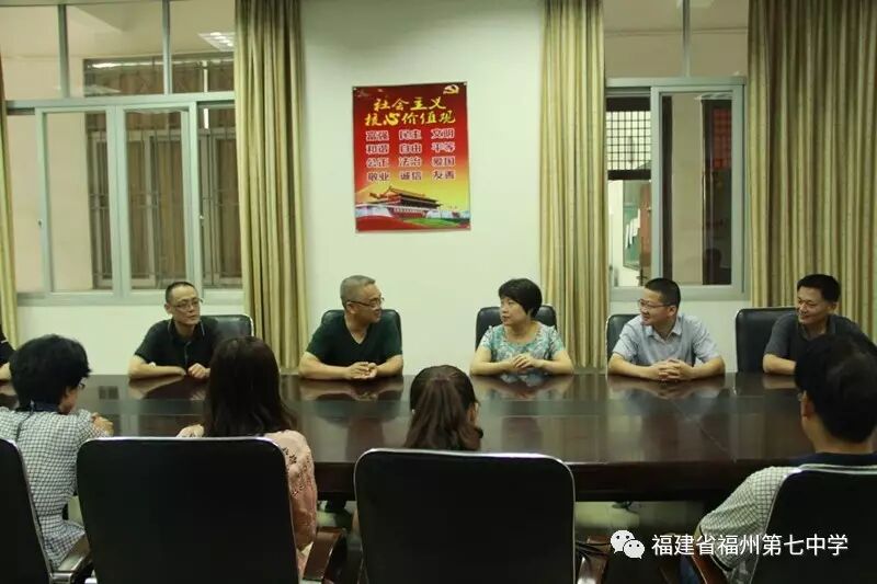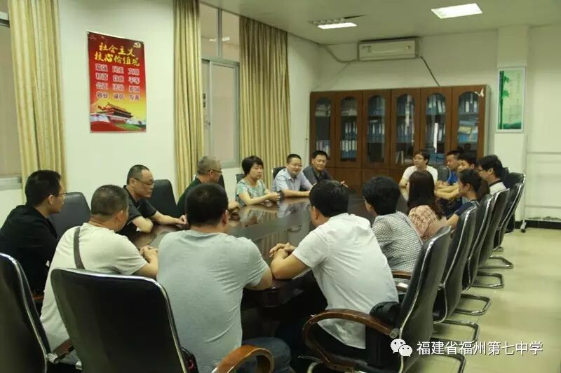 2017年6月15日上午,微雨濛濛,晋安区教育局黄玉航副局长莅临七中,与陕西省延安市延川中学教师参观团进行了简短亲切的交流。该团由延川中学韩卫军副校长带领的21名延川中学骨干教师组成,将在我校进行为期一个月的学习交流活动。
